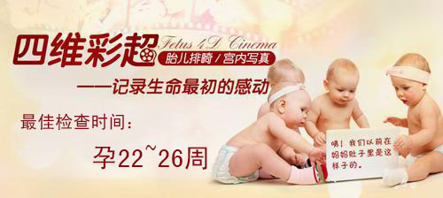 孕妇在怀孕22周-26周做最为合适,因为胎儿24周左右时正是大脑快速发育时期,可于孕22周左右进行。此时胎儿较前期增大,在同一幅图像上不能显示胎儿的整体结构,但胎儿局部结构及运动状态较前清晰。<<<点击预约四维彩超检查,享网络预约价