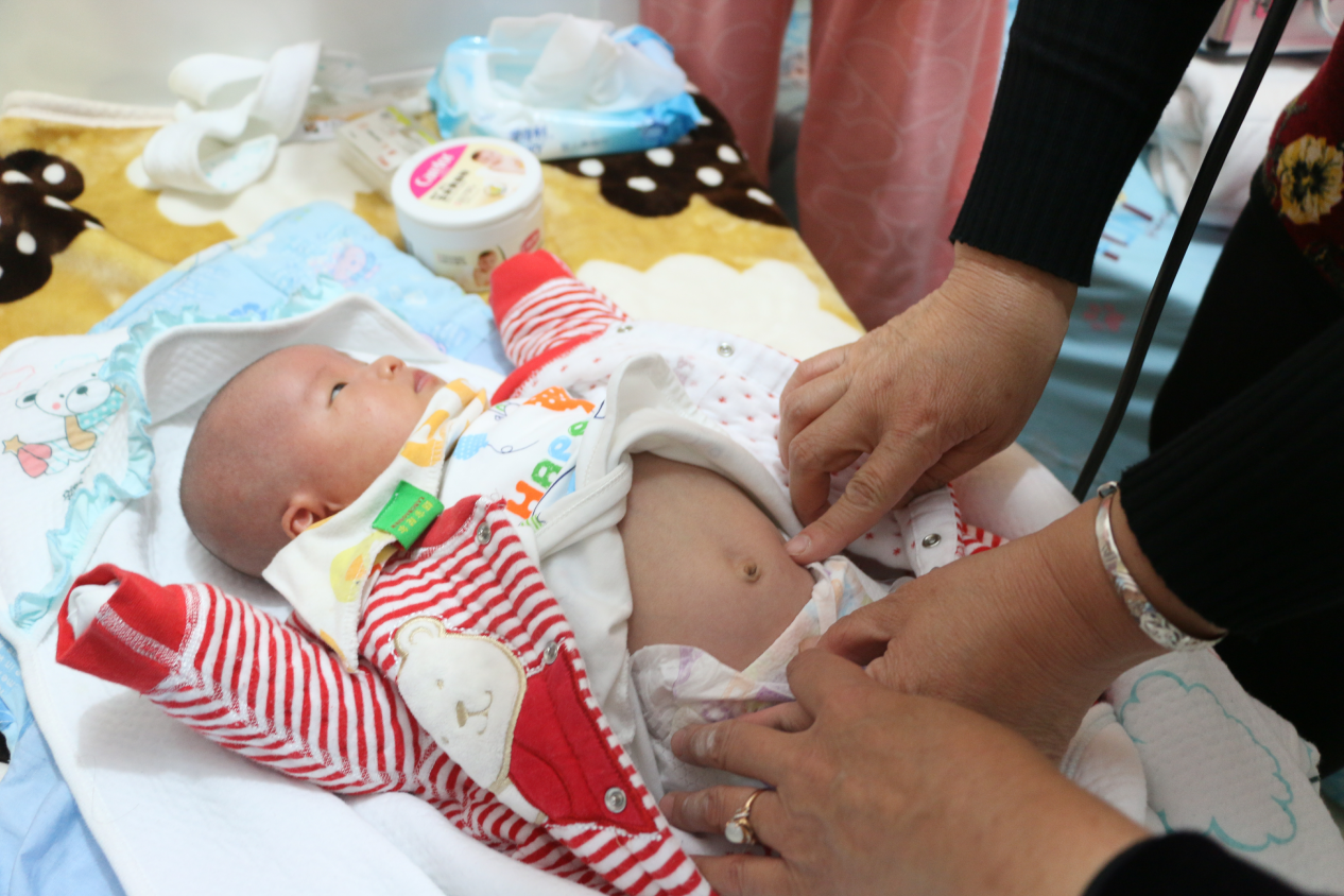 王淑娟主任笑着说:宝宝的肚脐恢复的可好了