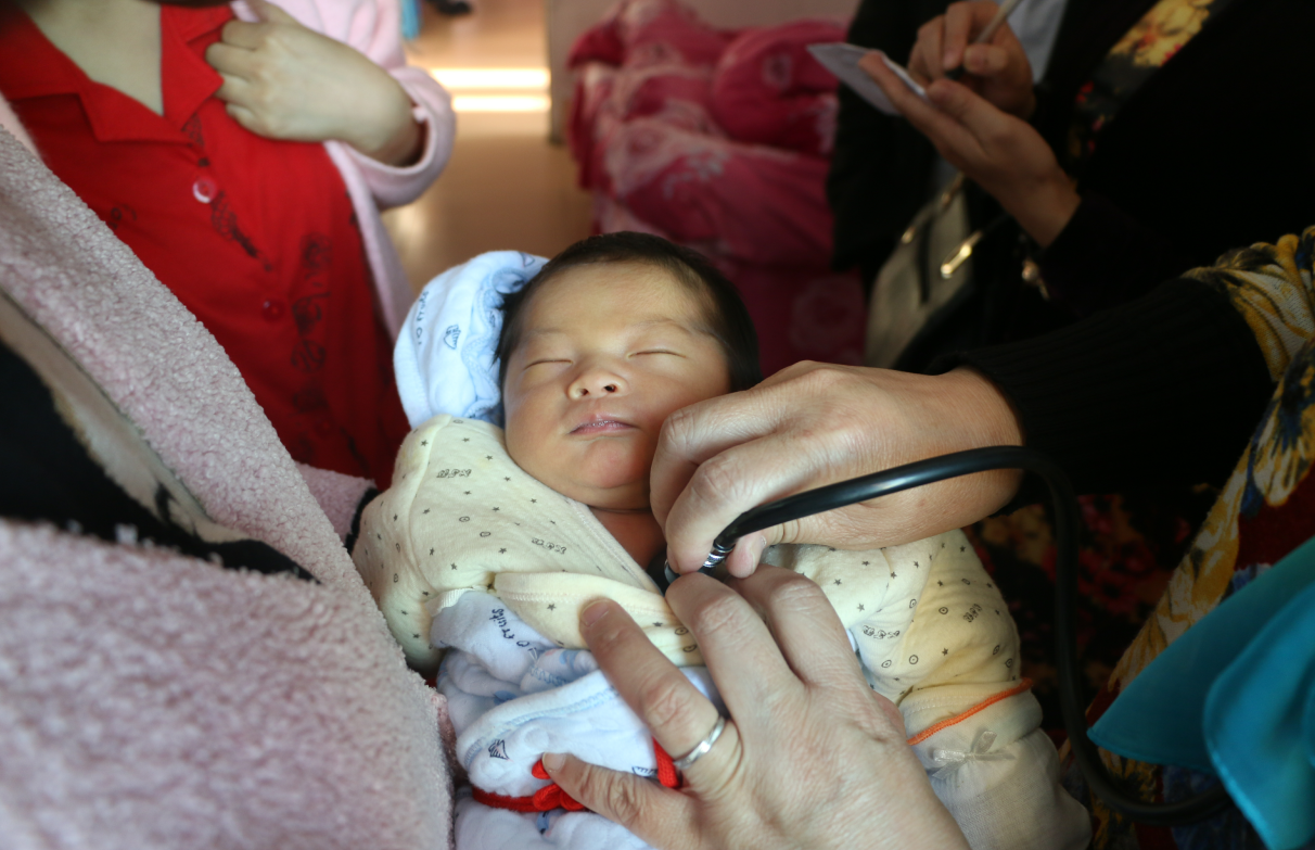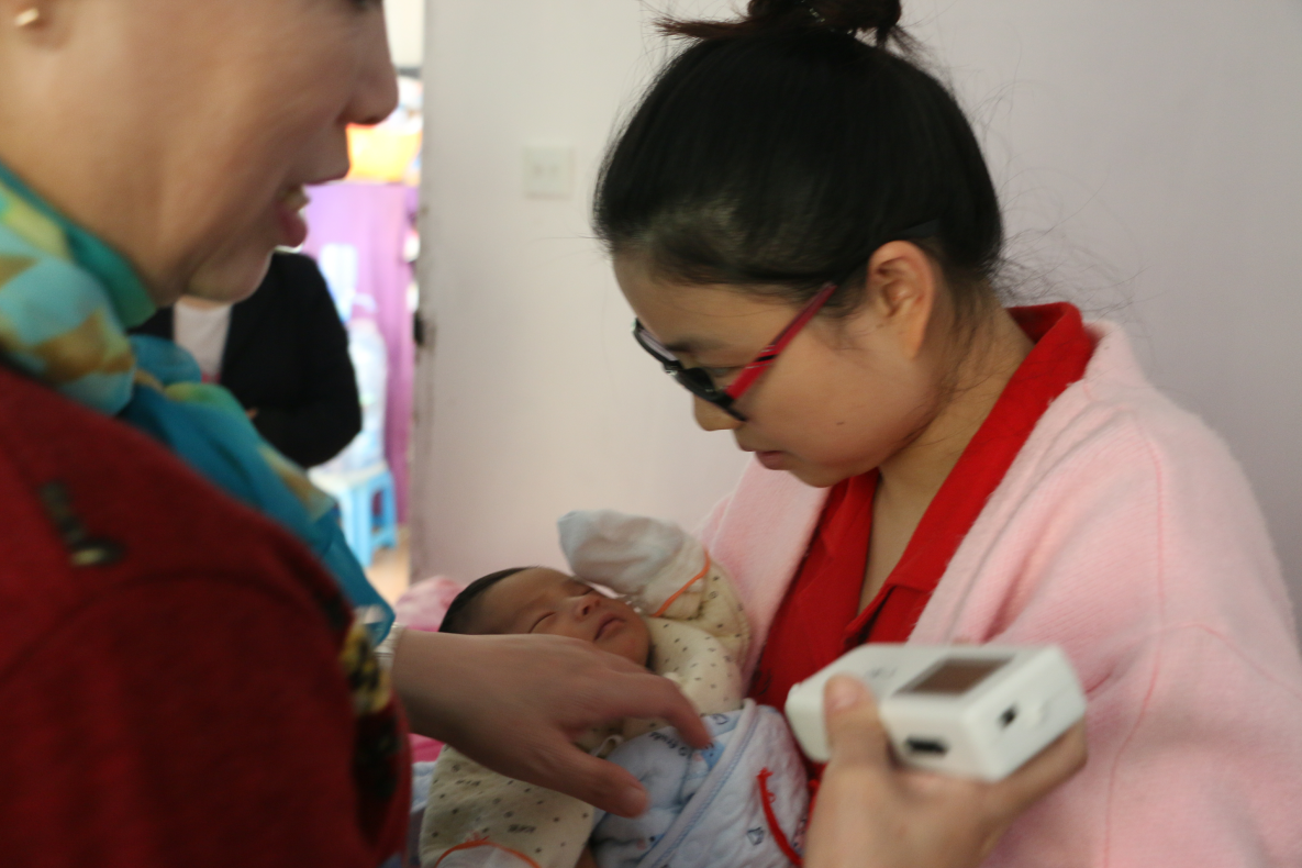 访视团谢过产妇家属的好意,就来到产妇和宝宝的卧室,为她们进行检查。