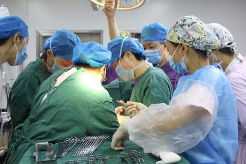 由于杨女士的肌瘤体积太大,已经压迫到输尿管,造成肾积水。加之其患有糖尿病,手术风险进一步加大。由于恶性肿瘤未排除,有可能需要做盆腔淋巴结清扫术,故特邀福州福兴妇产医院妇科医师曲军英,联合我院妇科医师共同实施手术。医务科组织相关科室术前进行了认真的会诊及术前讨论,制定了麻醉手术方案和应急预案,在做好充分准备后,于5月22日为杨女士进行手术。