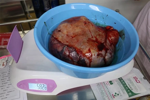 瞧瞧!肌瘤足足有一对双胞胎那么重!