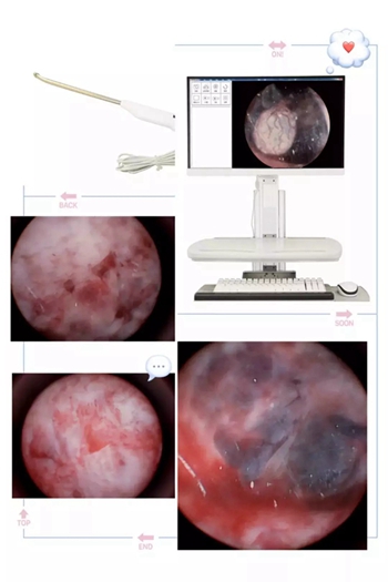 3、镜头高清30万像素,且头罩采用高科技纳米血材料,不沾血污,清楚的观测到宫腔里的情况,包括孕囊的大小和位置。