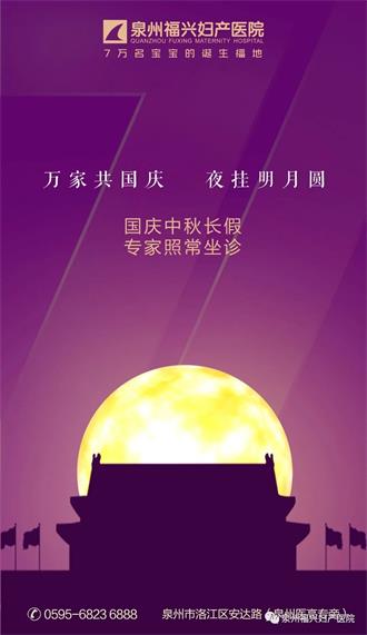 泉州福兴妇产医院健康献礼,中秋、国庆假期,专家照常接诊!