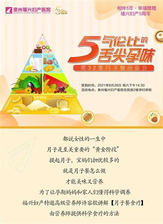 免费邀请您参加5与伦比的舌尖孕味 第32季月子餐品鉴会